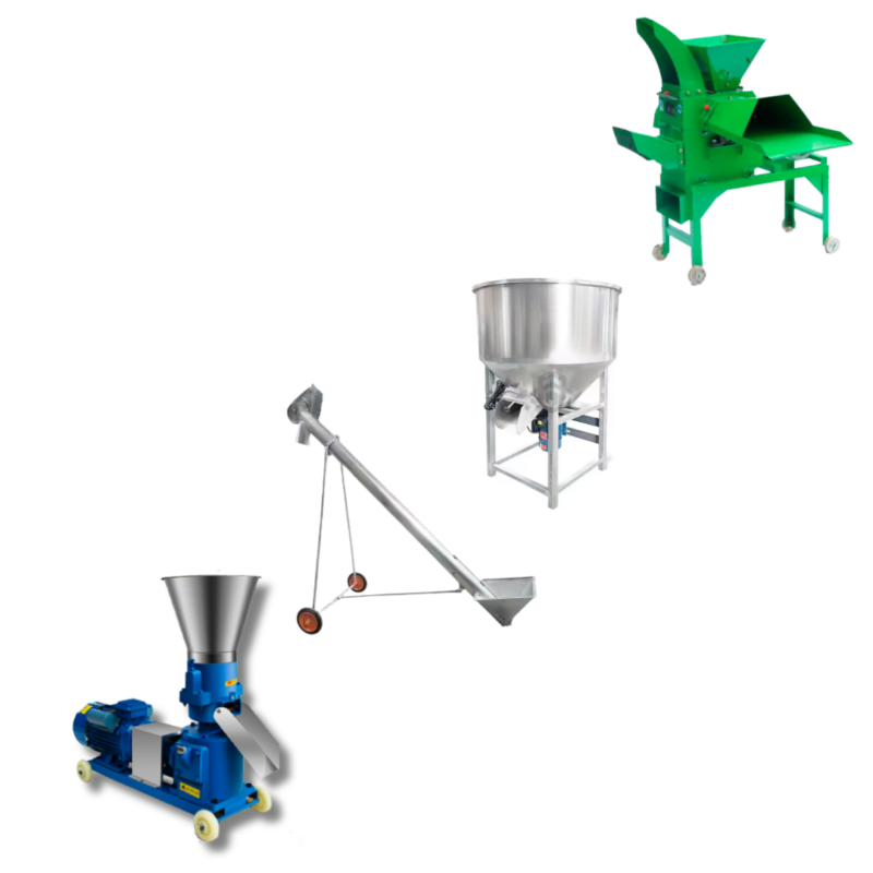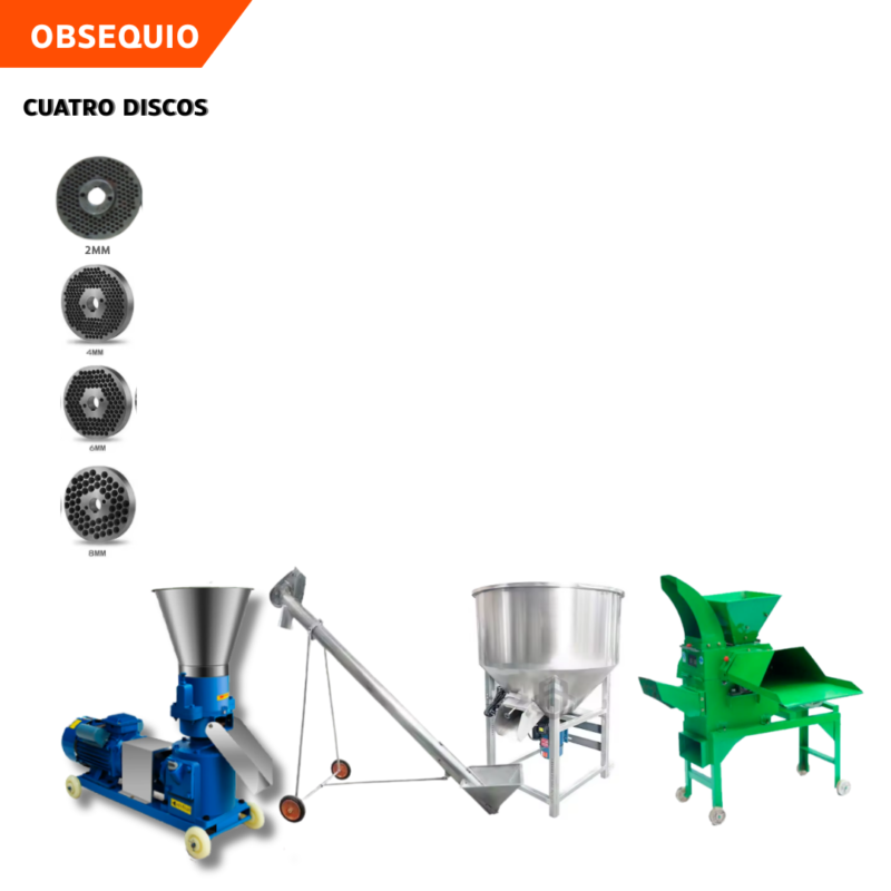 LÍNEA DE PRODUCCIÓN PARA LA FABRICACIÓN DE PELLETS CON PELETIZADORA, TUBO TRANSPORTADOR, MEZCLADORA DE ALIMENTOS, PICAPASTO