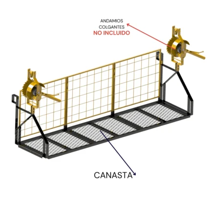 Canastas metálicas para andamios colgantes están diseñadas para ofrecer un trabajo seguro, versátil y duradero: son de rápido montaje, robustas y fabricadas con materiales de gran resistencia, para asegurar un desempeño confiable. Disponibles en 1, 2 y 3 metros.