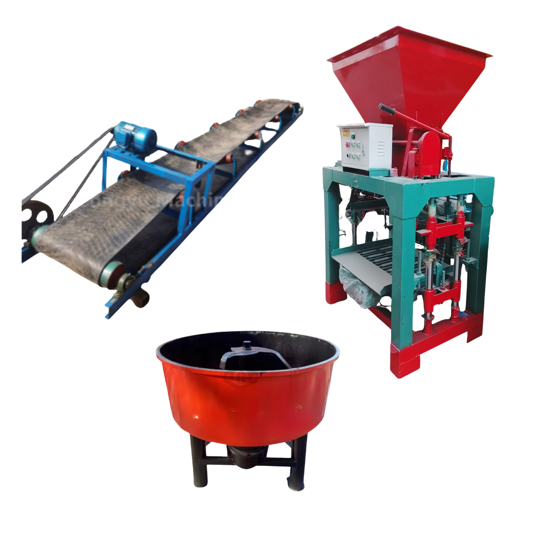 LINEA DE PRODUCCIÓN SEMIAUTOMATICA BLOQUERA CON CONTROL ELÉCTRICO CON TOLVA – BANDA TRANSPORTADORA Y MEZCLADORA DE MORTERO