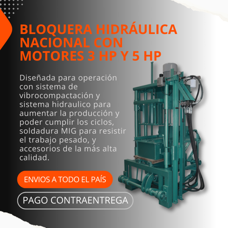 Máquina diseñada para alta productividad que incluye 1 molde de cualquier medida, ideal para la fabricación de bloques o adoquines según su necesidad. Incorpora sistema de vibrocompactación y sistema hidráulico, lo que optimiza los ciclos de producción y garantiza piezas de excelente calidad. Su estructura cuenta con soldadura MIG para trabajo pesado y accesorios de alta calidad que aseguran durabilidad y rendimiento.