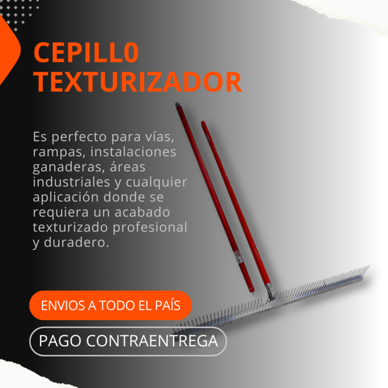 Es ideal para lograr acabados antideslizantes y profesionales en superficies de hormigón. Fabricado con estructura metálica resistente, está diseñado para trabajos pesados y continuos en vías, rampas e instalaciones industriales, garantizando uniformidad y durabilidad en cada pasada.