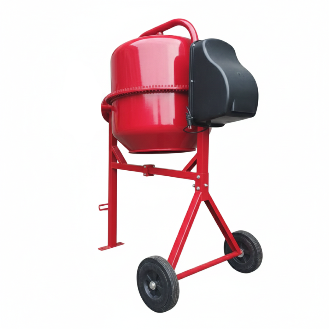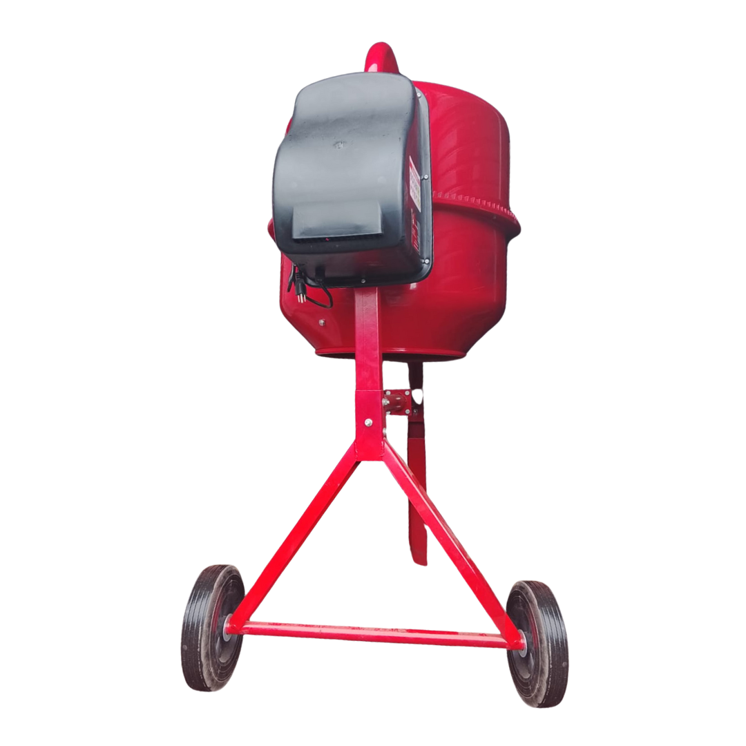 Opera con velocidad de agitación de 28 r/min, asegurando una correcta integración de cemento, arena, grava y agua. Funciona a 110V y cuenta con motor eléctrico de 1.3 hp, proporcionando par constante y desempeño eficiente. Su estructura compacta facilita la movilidad en obra y la convierte en un equipo adecuado para construcción liviana y mediana.