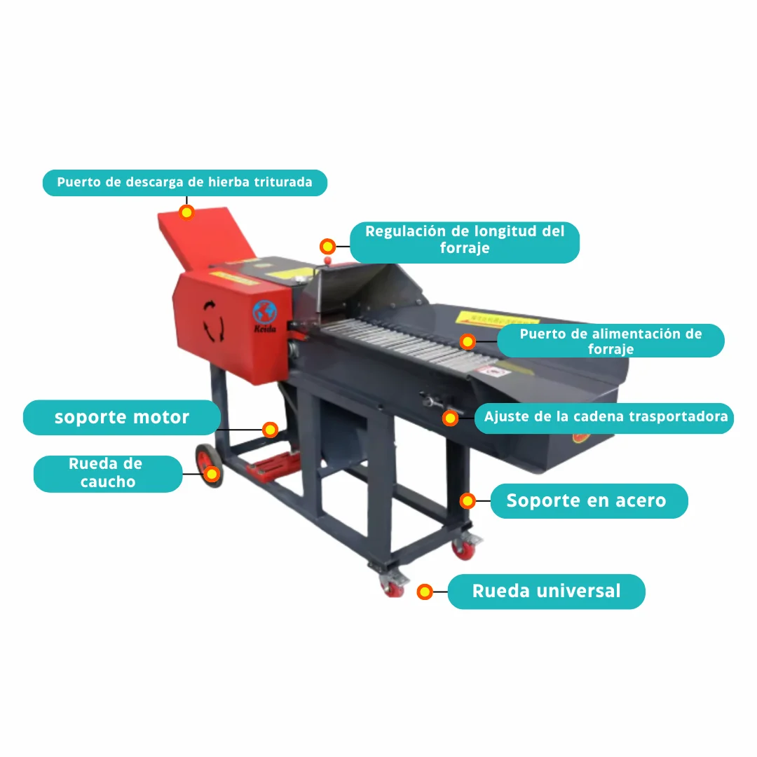 Nuestra máquina esta diseñada para el picado rápido y eficiente de pasto, forraje, paja, maíz verde y otros materiales vegetales utilizados en la alimentación animal. Su sistema de corte de alta velocidad permite obtener un material uniforme, facilitando el consumo por parte del ganado y mejorando el aprovechamiento del alimento.