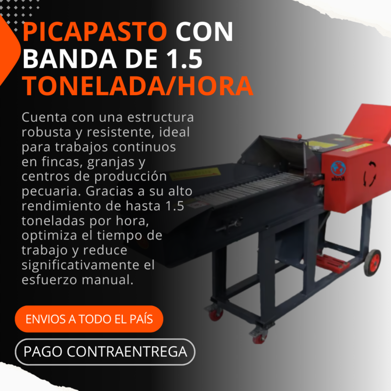 Cuenta con una estructura robusta y resistente, ideal para trabajos continuos en fincas, granjas y centros de producción pecuaria. Gracias a su alto rendimiento de 1.5 tonelada por hora, optimiza el tiempo de trabajo y reduce significativamente el esfuerzo manual.
