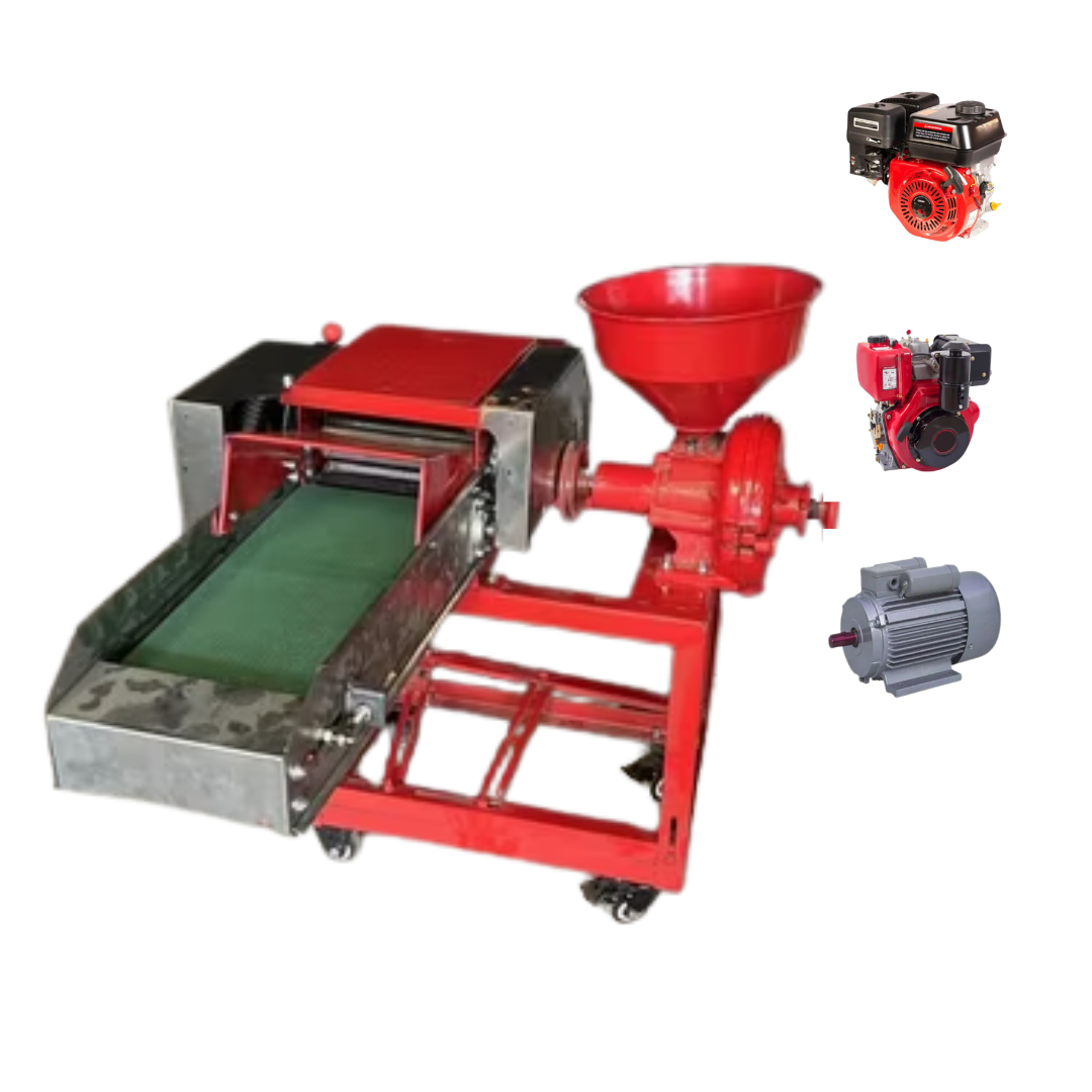 Máquina agrícola multifuncional (2 en 1) diseñada para triturar forrajes verdes/secos y moler granos (maíz, sorgo, soya) o tubérculos cocidos. Integra cuchillas de corte y martillos en un mismo equipo, optimizando la preparación de raciones alimenticias balanceadas para ganado bovino, porcino y avícola.