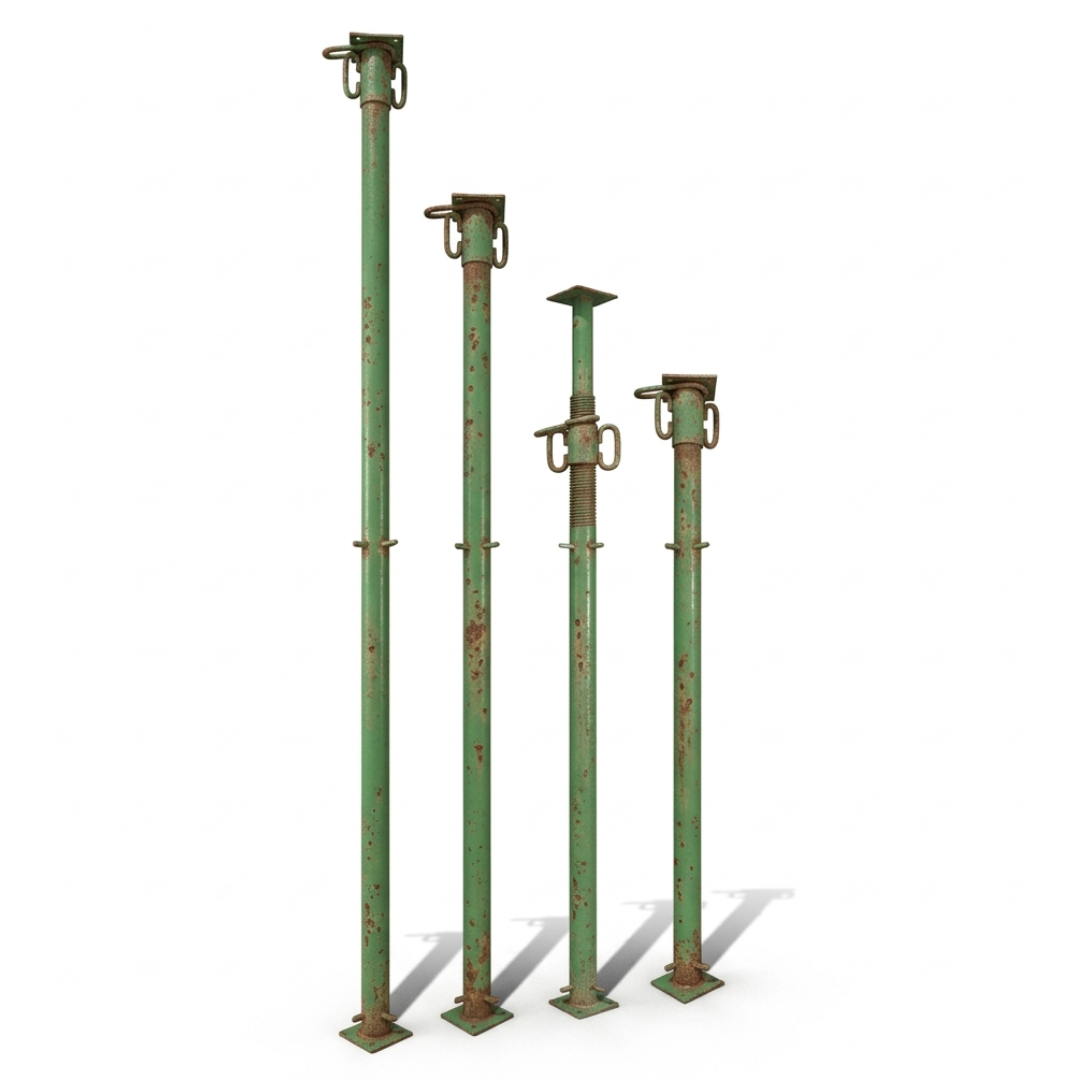 - Uso principal: Apoyo vertical temporal para formaletas (tableros de encofrado) durante la construcción de losas y estructuras, facilitando su nivelación y ajuste de altura.